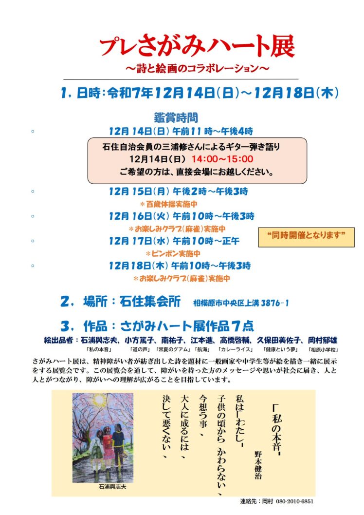 精神に障がいのある方の作詩をイメージして、画家・絵画愛好家・中学生などが絵を描き共に展示します